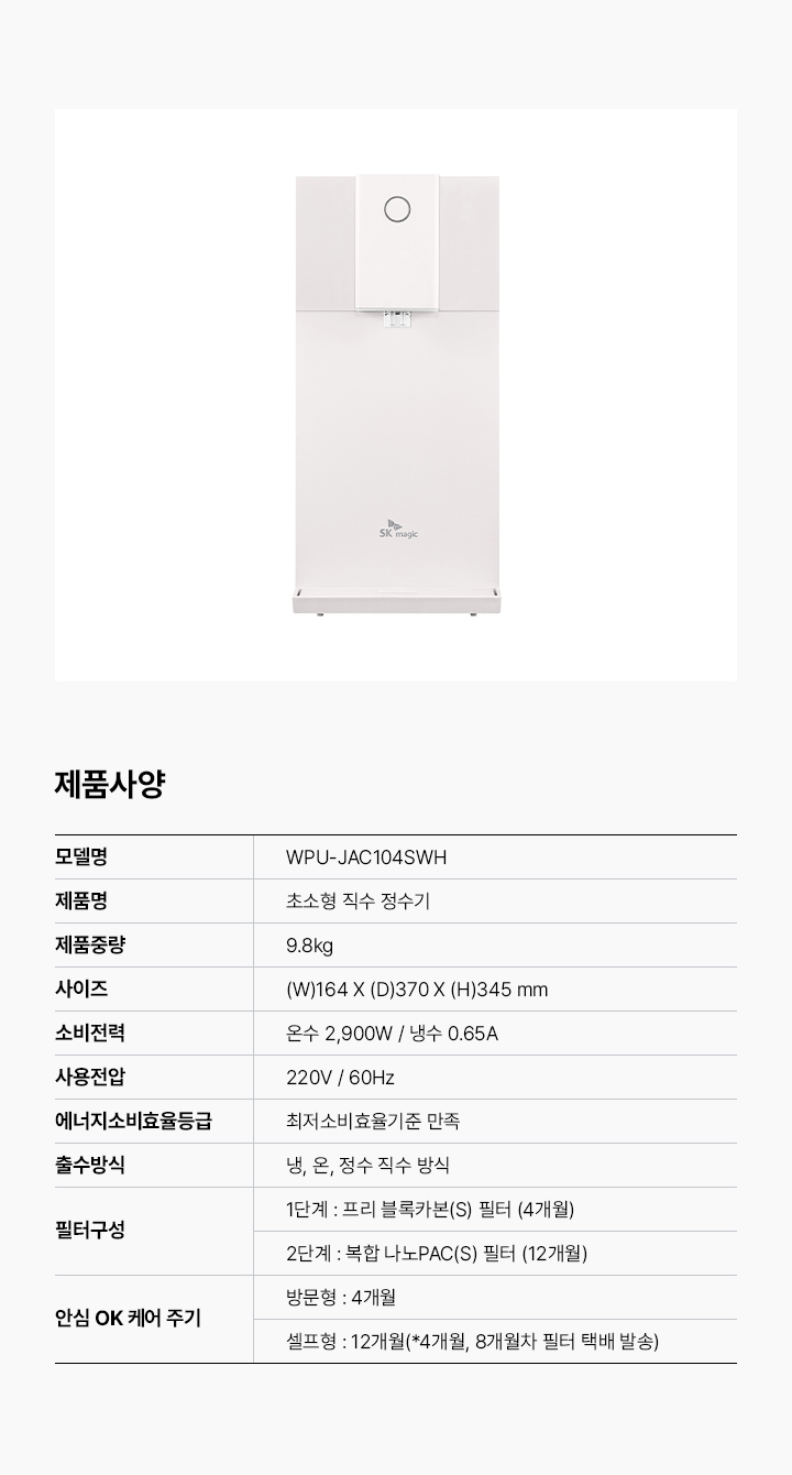 | 설치 / 배송 정보 | SK매직 본사 설치기사 직접 배송/설치 |